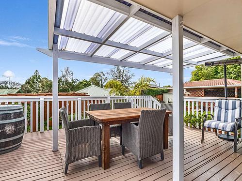 Outdoors, the 664m² section is designed to offer more than just lawn. A covered deck frames the back, the garden is private and mature and raised beds are ready for veges or flowers. There's a garage, carport & concrete pad for the motorhome, an extra studio that opens the door to hobbies, work-from-home or storage. It's a property with small surprises that add up to real value.