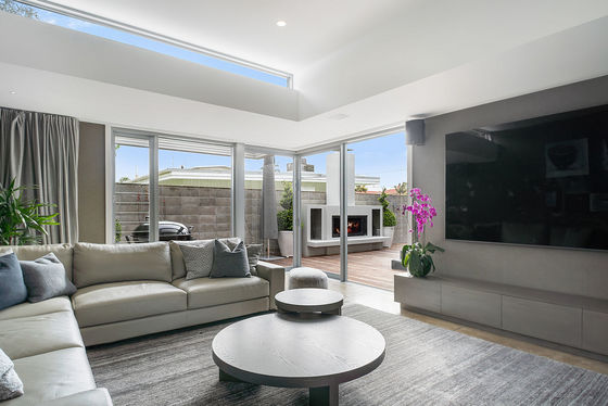 Step inside and be greeted by an abundance of natural light that fills the space, creating a warm and inviting atmosphere. The expansive open-plan kitchen, living, and dining area boasts exquisite polished concrete floors and modern underfloor heating, ensuring comfort year-round. Large glass sliding doors seamlessly connect the indoor and outdoor living spaces, leading to the multiple outdoor entertainment areas and large flat lawn. The newly renovated chef's kitchen is a culinary paradise, equipped with high-end appliances and a separate scullery that elevates functionality without compromising style. On the ground level, you'll also discover an inviting additional living/media room, perfect for unwinding, as well as a stylish guest bathroom for your visitors. This residence truly exemplifies the best of beachside living, offering a stunning atmosphere for both entertaining and day-to-day life.