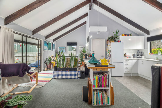 Built in the late 1980's, the home features two bedrooms and high raking ceilings in the living area, which enhance the sense of space and add character with a ski-lodge feel. The open plan kitchen, dining and lounge keep everything connected, ensuring you're always part of the conversation when entertaining.