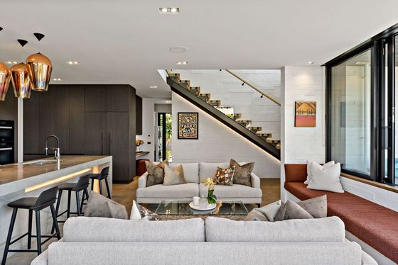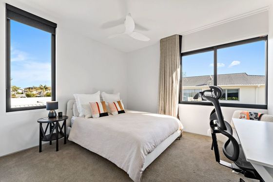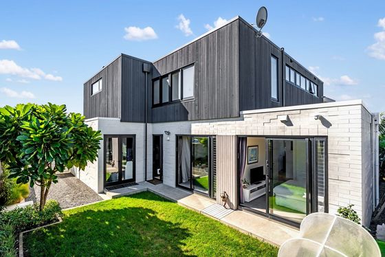 The exterior is finished in a striking combination of insulated block and vertical cedar weatherboard with a bespoke colourway. Inside, the interiors offer clean lines, high stud ceilings and layered textures to create a sense of sophistication and understated luxury.