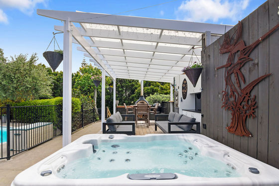 • Outdoor cabana with pizza oven, spa pool, heated swimming pool, and outdoor kitchen facility