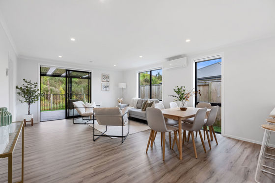 A spacious open plan living and dining area that connects effortlessly to the outdoors