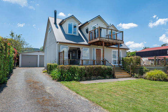 The rear section adds further versatility, with two tiered levels offering options for gardens, play areas, or a private outdoor retreat. A separate double garage provides excellent storage and workshop space, and the home is serviced by the Hamurana water supply.