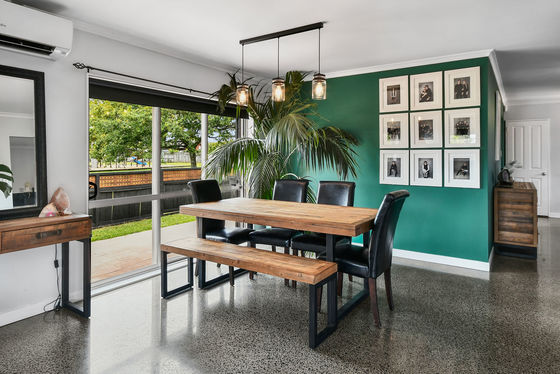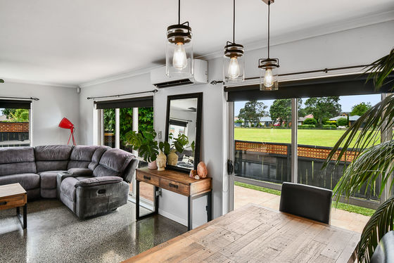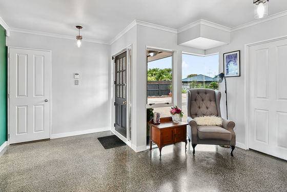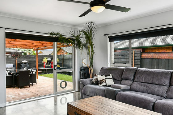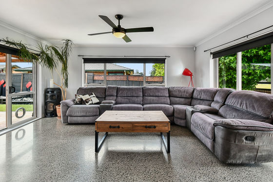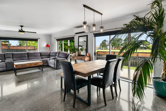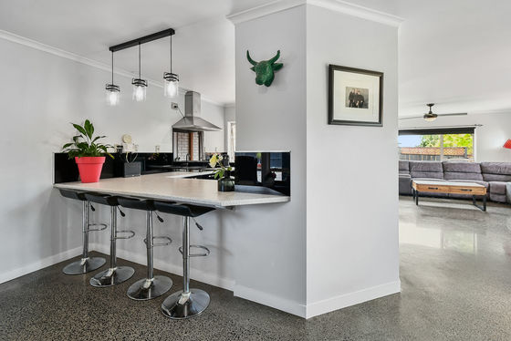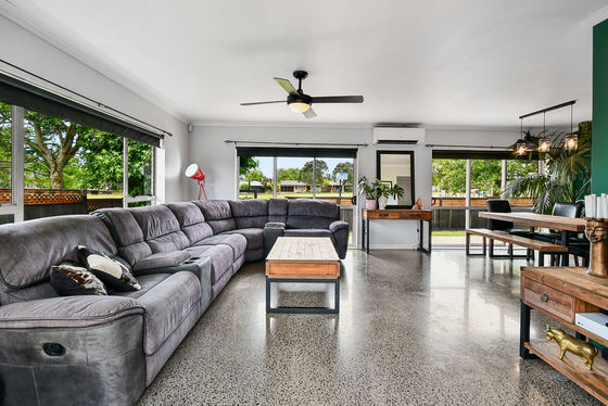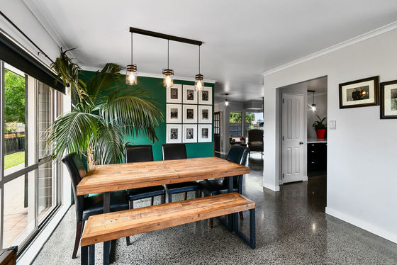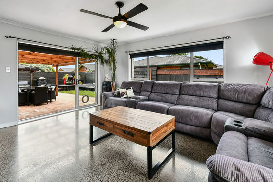 The home features sleek polished concrete floors throughout the main living areas, delivering a modern, durable finish that's as practical as it is beautiful, perfect for easy-care living. The open-plan living and dining areas flow seamlessly to the outdoor entertaining space, spacious single level home that enhances space, light, and functionality-perfect for both everyday family life and entertaining.