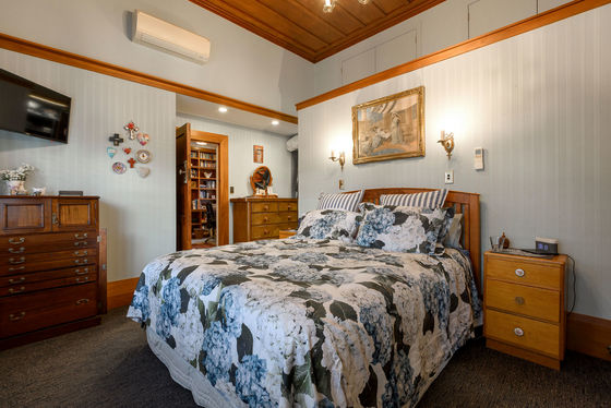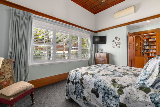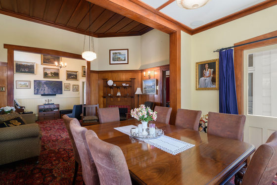 Subsequent generations have respected its heritage while extending and adapting the home to suit evolving family needs. The interior exhibits a range of native timbers, notably in the very high stud ceilings, in floors under Axminster carpets and in panelling. The craftsmanship continued when later, one room was reinstated to a library and again, a decade ago, in the creation of the new kitchen/ dining area with its superbly executed cabinetry and wine storage.