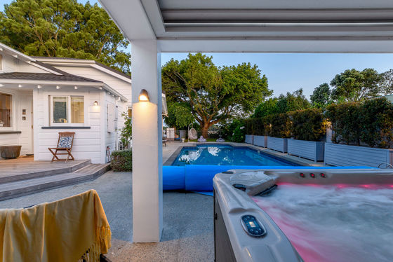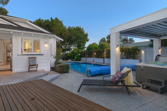 Beside the pavilion, find a spa pool and an inground pool where afternoon sun invites leaping into the 2-metre-deep end or cooling on the shallow steps at the other. You can almost jump in the water from the pool house beside double garaging and workshop space.