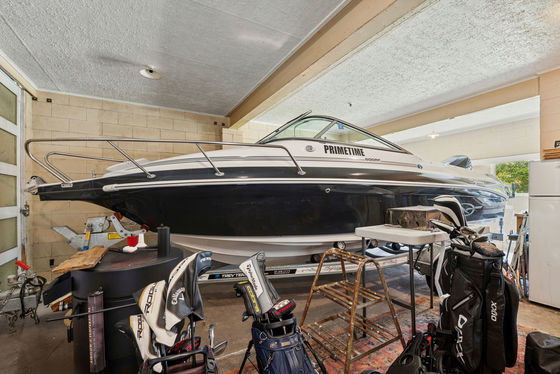 Practicality hasn't been overlooked. The double garage includes one extended bay measuring approximately seven metres, ideal for secure boat storage, along with space for vehicles and lake toys. A log fire warms the upstairs lounge, complemented by gas hot water for convenience.