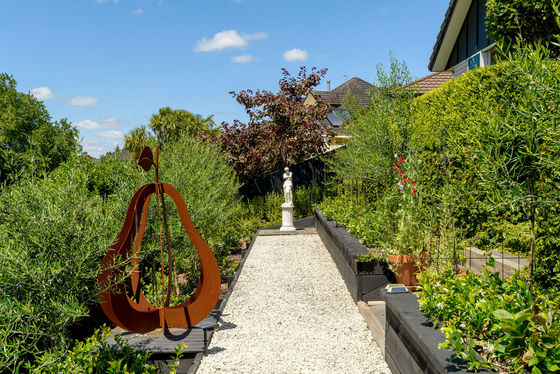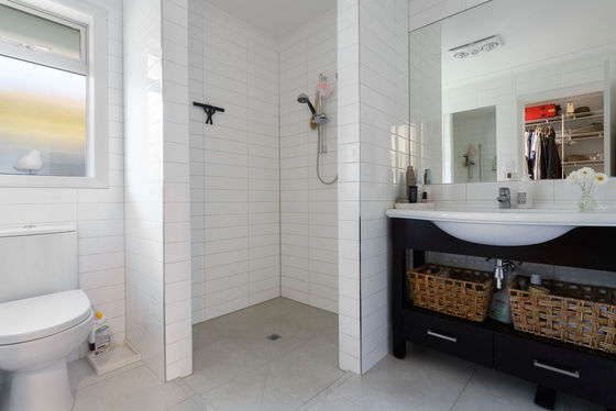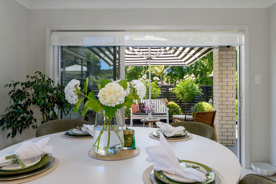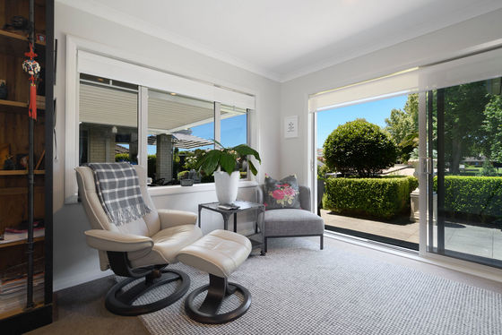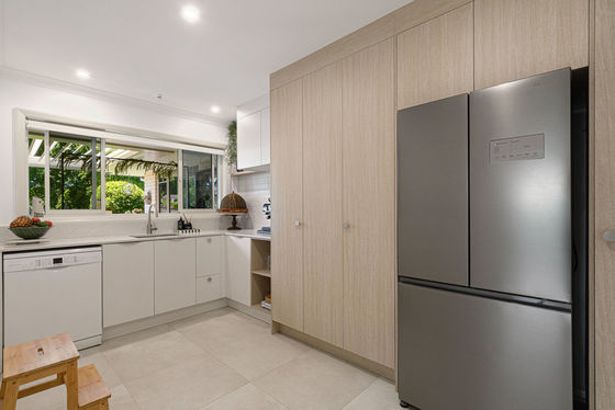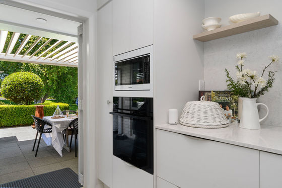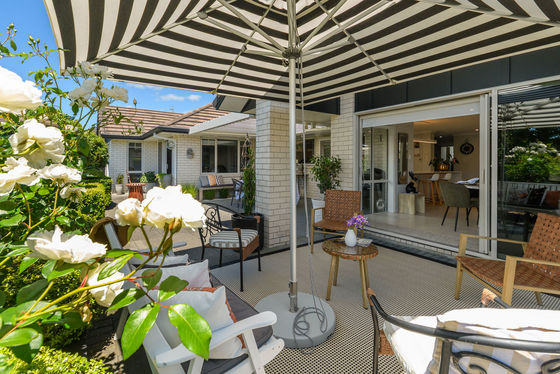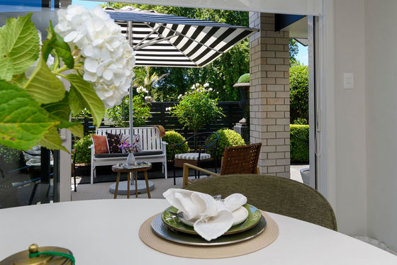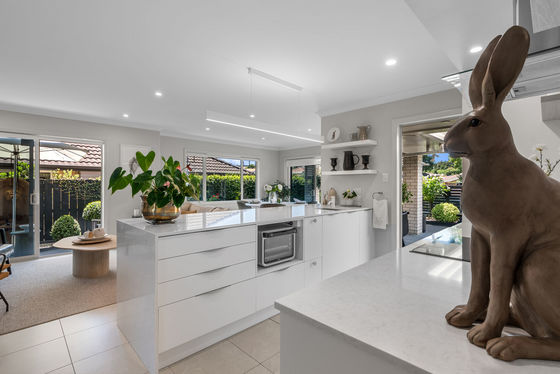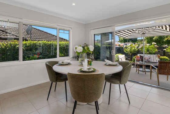 Open plan living and dining is anchored by a modern kitchen and direct access through to the sheltered patio area, where mature landscaping blends nicely with the reserve land to offer a sense of spaciousness and privacy.