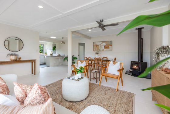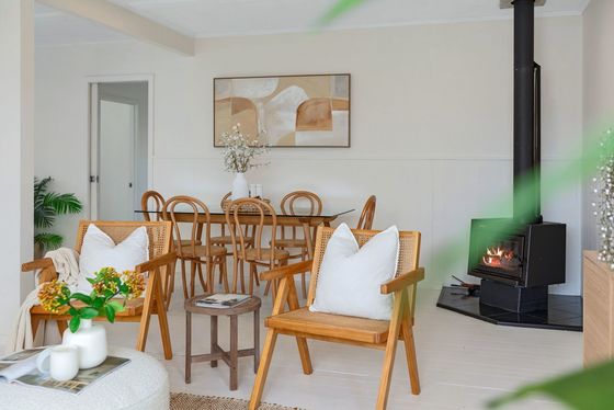 Light, bright and sunny throughout, the home has a spacious feel from the moment you walk in. The open plan kitchen, living and dining area is a real hub; perfect for everyday living, relaxed dinners, or friends dropping by after the beach. In winter, the fireplace adds warmth and a cosy atmosphere, making it a space you'll appreciate year round.