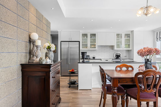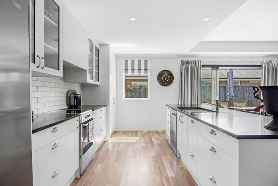 The homes superb design starts with a polished concrete block feature wall at the entrance - giving privacy to the living areas. This offers access to the kitchen at one end or to the living room at the other. The modern, contemporary kitchen features engineered stone benchtops and breakfast bar and seamlessly flows to the dining and living spaces - ideal for gatherings of any size. The formal lounge is accessed through double doors which can slide back to make an intimate space or one large room - catering for both everyday life and entertainment.