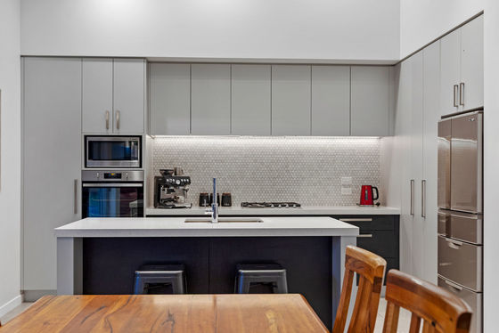A cleverly concealed study nook adds a layer of versatility, offering a discreet and functional workspace without compromising the home's sense of style or space.