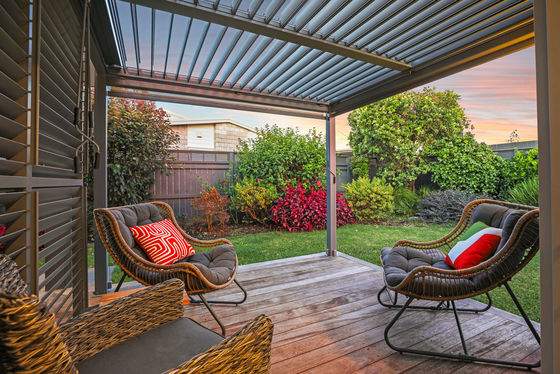 Outdoor living is superbly executed. The covered deck, complete with ambient mood lighting, extends seamlessly from the interior via ranch sliders, creating an inviting alfresco environment for year-round entertaining. The landscaped gardens are well-maintained, showcasing vibrant colour and complemented by a handy garden shed for additional storage.