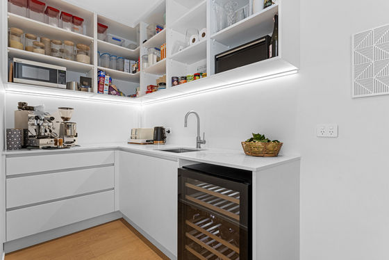 Complementing this is a well-appointed butler's pantry, offering abundant bench space, an additional sink, and a wine fridge - perfect for seamless entertaining and everyday practicality.