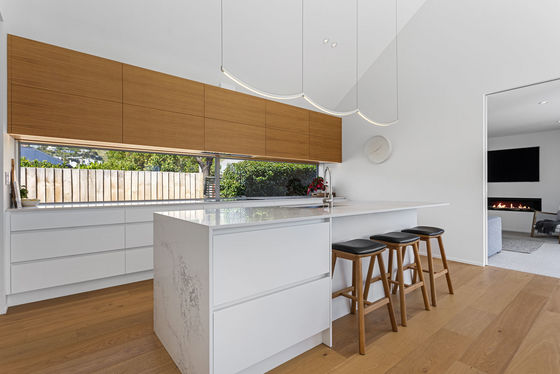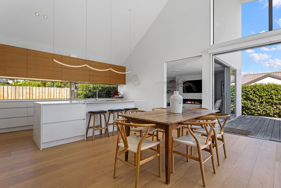 Set on a generous 715sqm section, this home enjoys plentiful sun and delivers effortless modern living. At its heart, a light-filled open plan living and dining zone is anchored by a custom made kitchen, where a spacious island, beautifully crafted joinery, premium tapware and hardware, Miele double ovens and dishwasher, plus a striking full-width picture window combine to create a true focal point.
