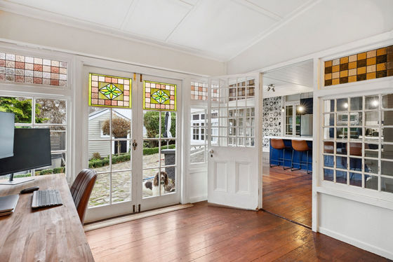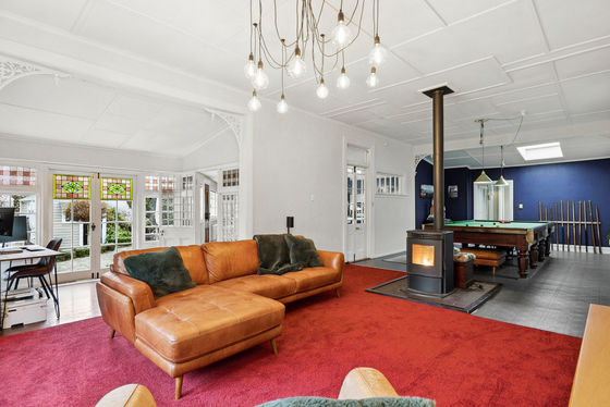 This four-plus bedroom character property is rich with heritage charm -- featuring exquisite hand-crafted stained glass windows, Royal Doulton foyer tiles imported from the UK, and beautifully carved timber detailing throughout. Inside, you'll find an impressive array of native timbers, highlighted by the striking Kauri flooring in the hallway and the Rimu timber flooring in the porch area, which now forms part of a modern, functional kitchen space.