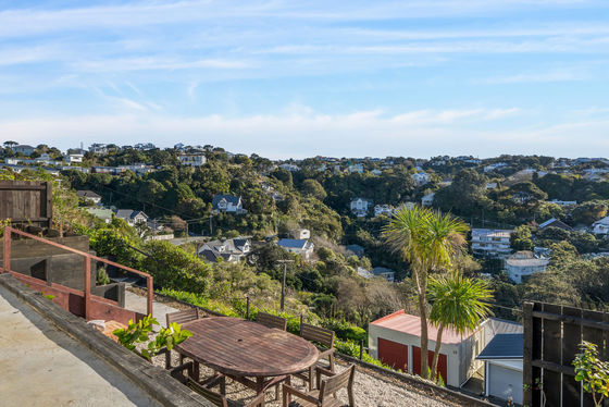 The rear of the house has extensive views of Mt Victoria, the Orongorongo Range, the South Coast, round to the Te Kopahou Reserve which is home to the Brooklyn Wind Turbine.
